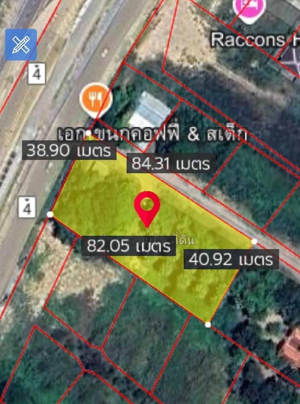 ขนาดที่ดิน 2 ไร่ หน้ากว้างติดถนนใหญ่ 38 เมตร