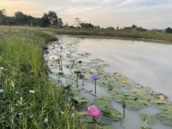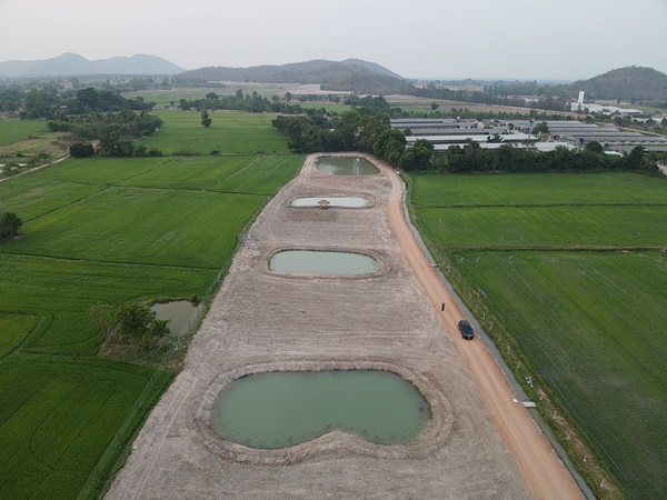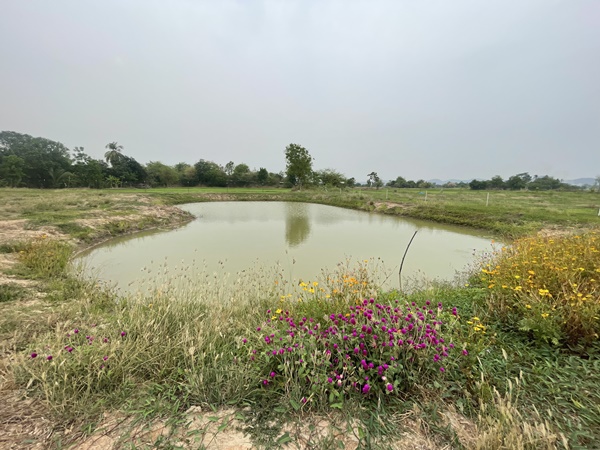 * ที่ดินมีการวางแผนออกแบบ วางท่อส่งน้ำตรงจากระบบชลประทานที่อยู่รอบพื้นที่มากักเก็บไว้ในสระส่วนตัว