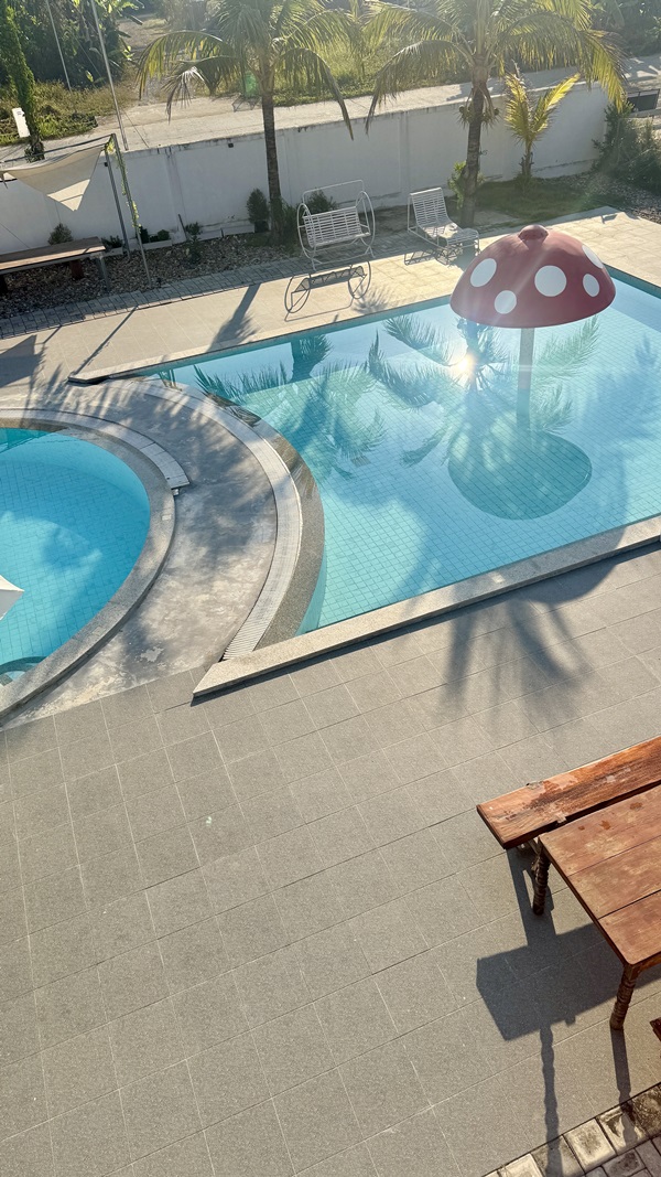 สระว่ายน้ำระบบน้ำเกลือ : มี 2 สระ ( สระเด็ก / สระผู้ใหญ่ )